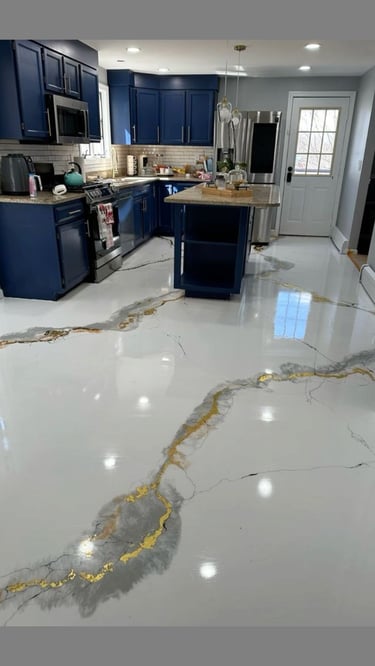 Metallic epoxy for living rooms, kitchens, hallways, and interiors, offering a seamless, modern, artistic surface that upgrades the entire home.